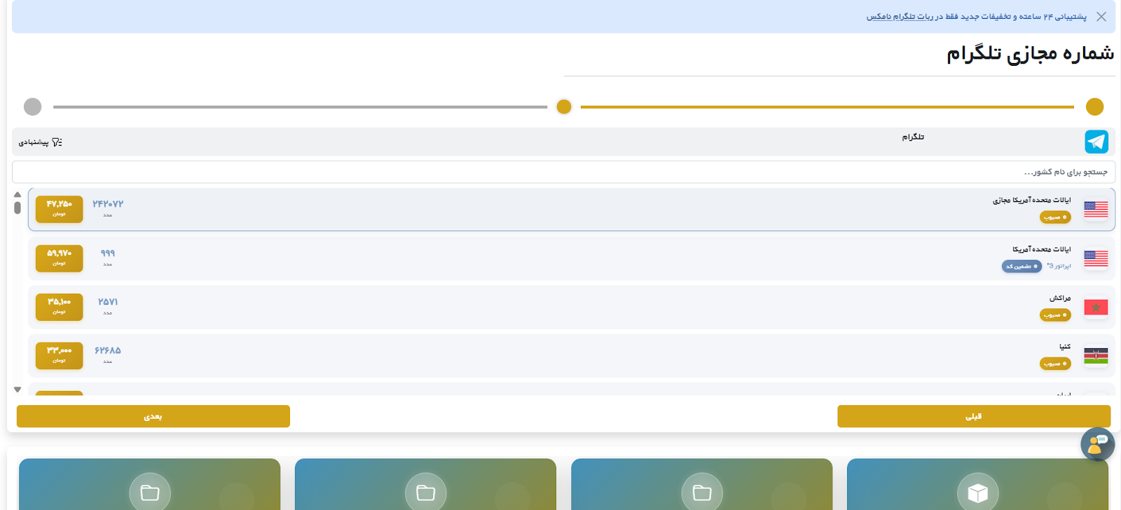 - انتخاب سرویس تلگرام: در پنل کاربری، گزینه تلگرام را از لیست سرویس ها انتخاب کنید.
